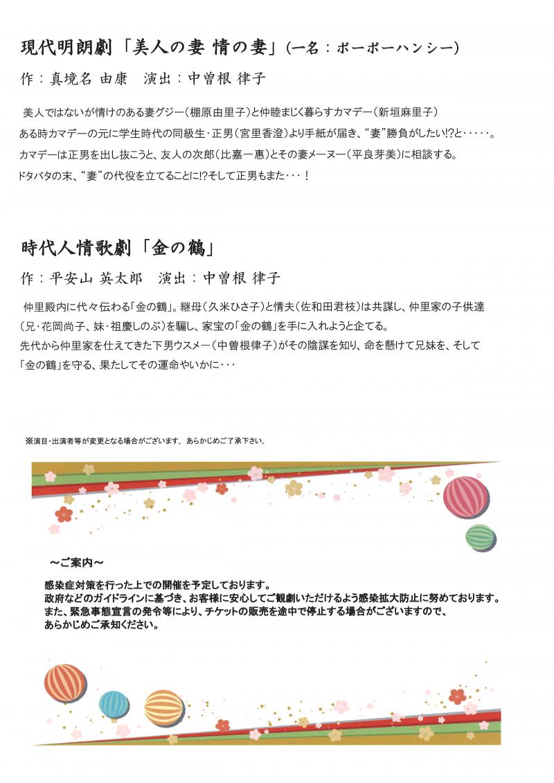 公開日時: 2022年9月8日800 × 1131 (沖縄芝居公演情報-劇団うない敬老の日公演 現代明朗劇「美人の妻情けの妻」他)